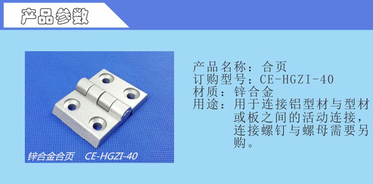 订购型号 : CE-HGZI-40材质 : 锌合金工艺 : 锌合金压铸 长度 :