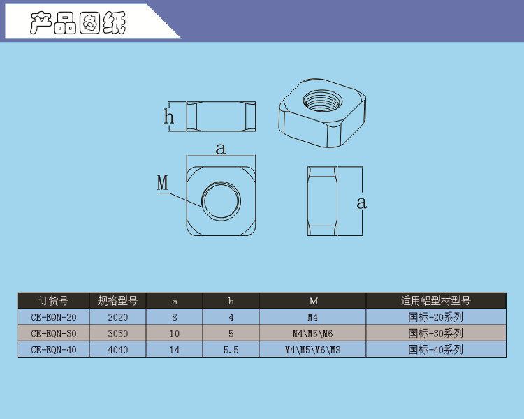 国标方形螺母 CE-EQN-30