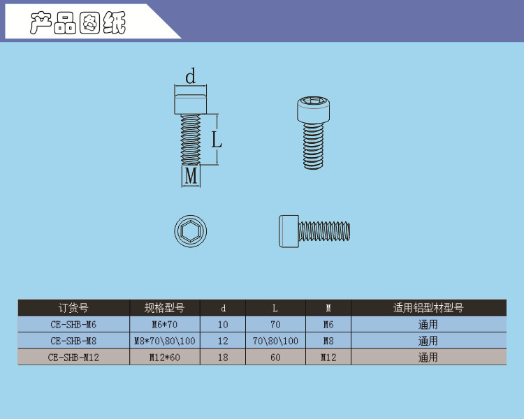 黑色内六角螺栓 CE-HSN-M12